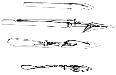 harpoons, barbed darts, riverine fishnets and traps) into novel applications (composite toggling