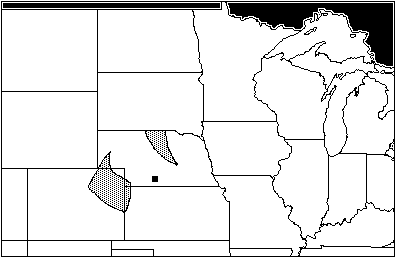 The Hulme Site, in Hall County, Nebraska, dates to ad 1175 1225. (Bozell 1991:229- 253). Its assemblage contains: Blarina carolinensis, the southern short-tailed shrew; Sylvilagus floridanus; Citellus franklinii; C. tridecemlineatus; Cynomys ludovicianus; Geomys bursarius; and Microtus ochrogaster. The site lies in nearly the center of the area of maximum sympatry, which runs from southern South Dakota through Nebraska and into Kansas (Figure 6). This assemblage represents a variety of habitats, with Plains animals (Citellus tridecemlineatus, Cynomys ludovicianus); mixed-habitat animals (Citellus franklinii); and woodland animals (Blarina carolinensis, Sylvilagus floridanus), although these last three are unparticular animals.