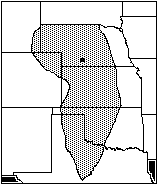 The next oldest site of the Woodland affiliation is the Wallace site, in Gosper County, Nebraska, near the Kansas border, and dates from AD 425 to 650. (Bozell & Koch n.d.) The Wallace assemblage includes: Scalopus aquaticus, the eastern mole; Cynomys ludovicianus, the blacktail prairie dog; Sciurius niger; Perognathus hispidus, the hispid pocket mouse; Onychomys leucogaster, the northern grasshopper mouse; Microtus pennsylvanicus, the meadow vole; and Geomys bursarius. There are two small areas of maximum sympatry for the Wallace site, one a sliver of north-central Nebraska running south from the Niobrara river, the other a small wedge in extreme northeastern Colorado (Figure 2). This unusual sympatry is caused by the distribution of Microtus pennsylvanicus, a vole with an affinity for open habitats near water. Today, M. pennsylvanicus is absent from much of Nebraska, including Gosper county. The secondary area of sympatry without M. pennsylvanicus runs along the Niobrara river in the north, south through Nebraska, Kansas and Oklahoma into central Texas (Figure 3). Sciurius niger is the only species of the Wallace assemblage with affinities for woodland habitats; the rest show a definite preference for open, sparsely-vegetated habitat.